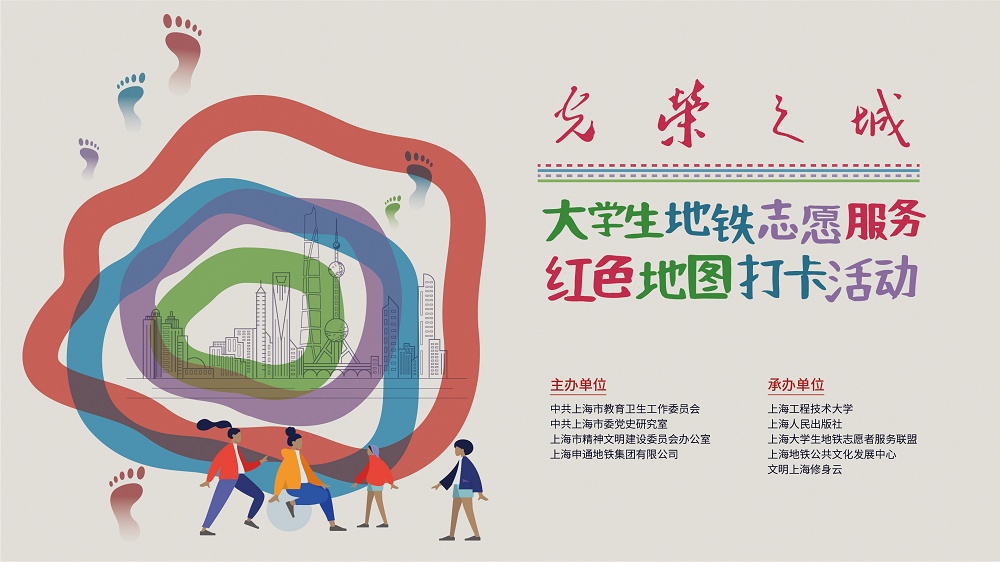 为进一步推动党史学习教育,学习贯彻十九届六中全会精神,弘扬伟大建党精神,凝聚具有上海特色的志愿服务文化,由上海市教卫工作党委、中共上海市委党史研究室、上海市精神文明建设委员会办公室、上海申通地铁集团有限公司主办,上海工程技术大学、上海人民出版社、上海大学生地铁志愿者服务联盟、上海地铁公共文化发展中心、文明上海修身云共同承办的“光荣之城”——上海大学生地铁志愿服务主题活动暨红色地图打卡活动启动仪式在上海地铁人民广场站音乐角举行。