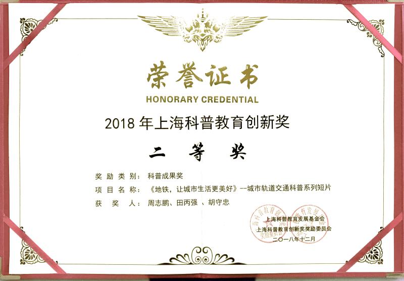 近日,2018年上海科普教育创新奖颁奖典礼在本市隆重举行。我校服装学院周志鹏等老师申报的《<地铁,让城市生活更美好>——城市轨道交通科普系列短片》项目,荣获本届上海科普教育创新奖科普成果奖二等奖。