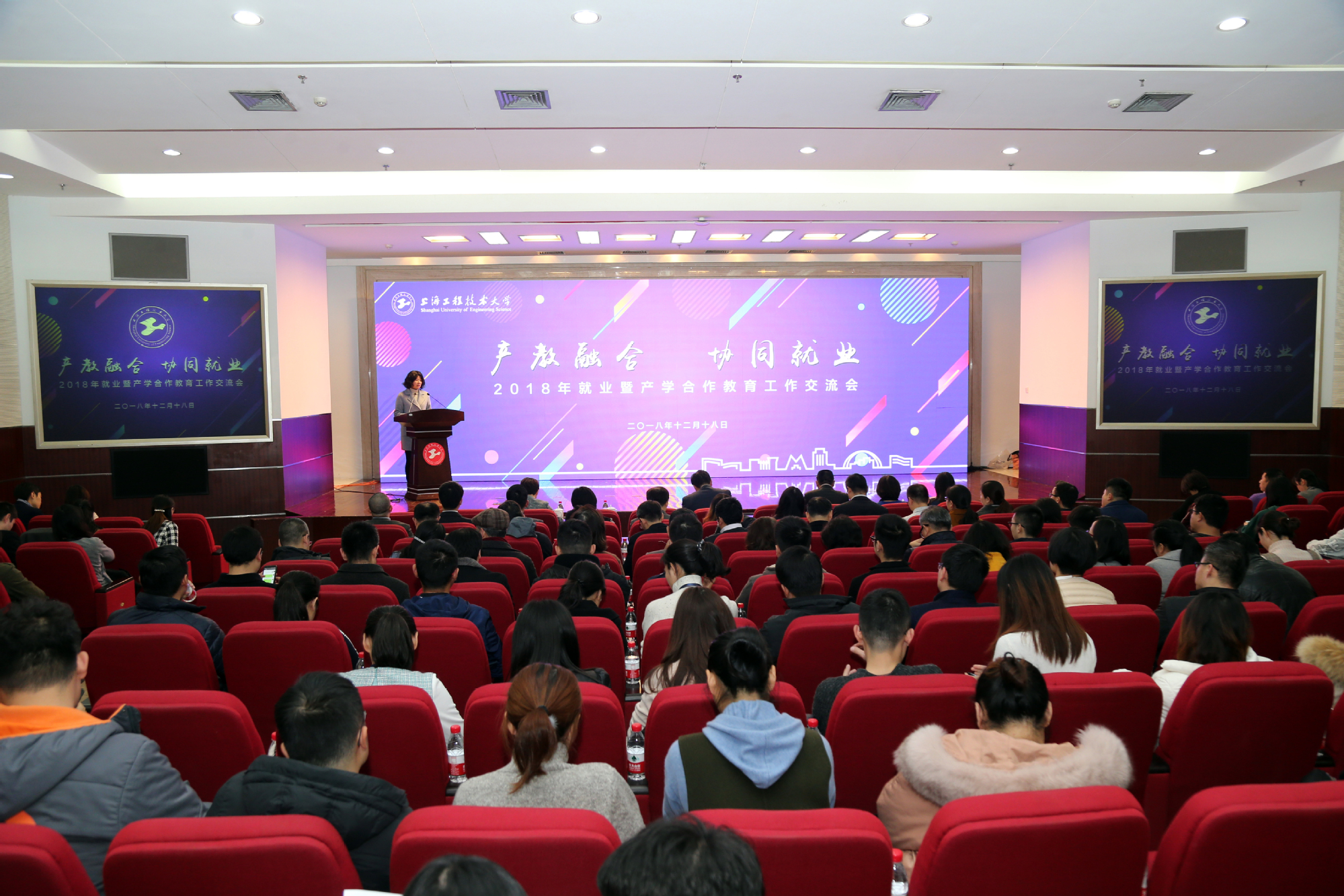 为深化产教融合内涵,协同促进我校毕业生高质量就业,12月18日下午,学校在图文信息中心第二报告厅举行2018年就业暨产学合作教育工作交流会。校党委书记李江,校党委副书记、副校长朱晓青,副校长姚秀平出席会议。合作企业嘉宾、各学院党政领导、相关职能处室负责人,全体辅导员、教师代表及学生代表参加了会议。会议由校党委副书记、副校长朱晓青主持。