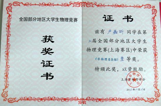 我校学生在第32届全国部分地区大学生物理竞赛(上海赛区)中再获佳绩,共有26名同学获奖,其中5名同学荣获一等奖,7名同学荣获二等奖,14名同学荣获三等奖,这是工程学子参加该项竞赛以来获得的历史最好成绩。