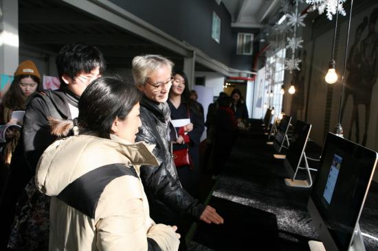 12月31日下午,在仙霞校区创意楼1楼大厅,中韩多媒体设计学院2013级学生的回国作品展开幕。此次展示的是中总结赴韩交流学习一年来的学习情况,并向学校和学院汇报课程学习成果。学院中韩方教师及学生参加了此次活动。