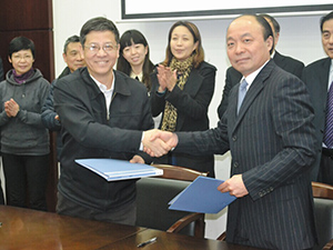 工程院院士褚君浩(右)被聘为奇士科协荣誉主席