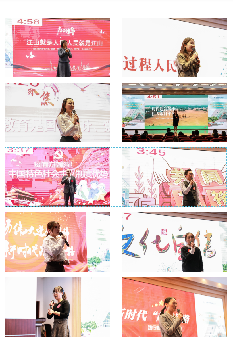 理论宣讲主要考察辅导员对马克思主义理论、习近平新时代中国特色社会主义思想、党的十九届六中全会精神等的学习宣传阐释能力,注重考察理论宣讲的政治性、思想性、理论性、政策性、导向性。决赛共设置“江山就是人民,人民就是江山”“时代造就英雄,伟大来自平凡”等10大主题,每个主题由一位辅导员抽取宣讲。参赛选手结合实际工作,展示了良好的理论功底、扎实的实践工作能力和良好的精神风貌。