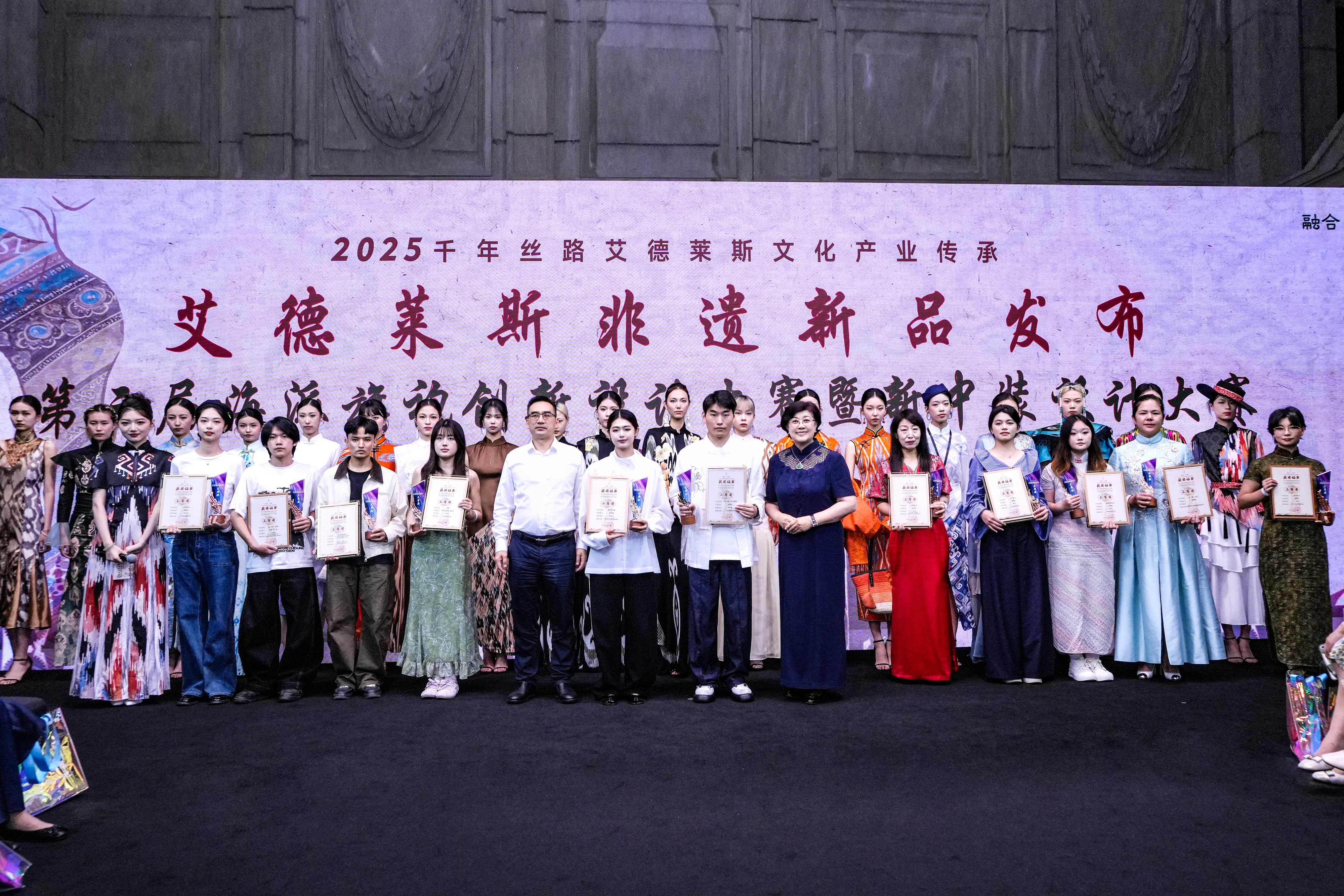 第三届海派旗袍创新设计大赛暨艾德莱斯新中装设计大赛以“全球邀约・场景新生”为核心,延续“生活旗袍、职业旗袍、礼服旗袍”三大创作维度。青年设计师以创意使非遗服饰从“仪式标签”,成为日常穿搭的文化表达。艾德莱斯非遗新品发布环节以“丝路活化石的当代重生” 为主题,纺研院及丝绸集团发言人在发布中表示:“艾德莱斯非遗的产业化发展,是沪喀文化交流的重要成果。我们通过工艺改良与设计创新,让这一‘21 世纪最后的手工业’真正走进现代生活。”