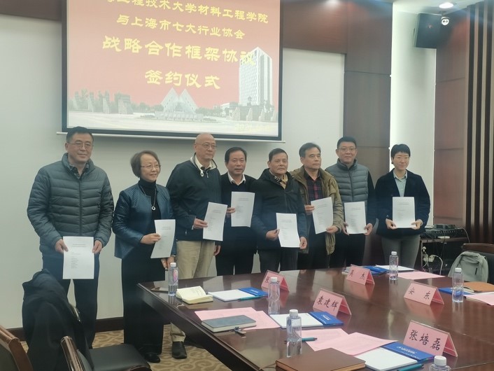 周细应院长总结指出,为进一步加强G60科创走廊产业工作整体水平,加强协同创新组织建设,发挥协会引领作用,通过我校与上海七大行业协会结对共建,共享科技服务、产学研及人才培养等资源,以所涉领域的相关学科和产业为依托,构建科创协同共建、产学研战略合作和协同发展新模式,全面提升双方各项工作整体水平、服务创新能力和核心竞争力,从而达到优势互补、资源共享、合作共赢。会议期间,在与会人员的共同见证下,材料工程学院周细应院长与上海市七大行业协会秘书长共同签署了战略合作框架协议,就组织共建、人才共育、项目合作及发展共促等四个方面达成共识,确认建立战略合作关系。