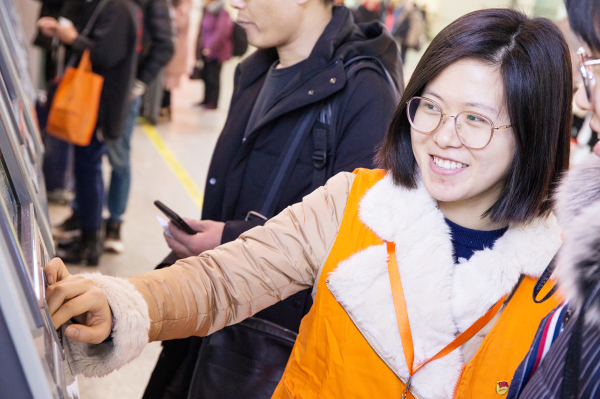 可不是吗?短短10分钟时间里,就有4名旅客找她咨询。“13号检票口往哪儿走?”“洗手间在哪里?”带着各式口音的问询都得到了满意的回答。“过去,春运离我比较遥远,但看到旅客脸上对团圆的期盼、打电话报信时流露的欣喜,让我瞬间感受到了春运的温暖,也更愿意为这份温暖‘加把火’。”四年来,这个笑起来甜甜的姑娘不仅在志愿服务中成长,更发自内心为春运的点滴变化点赞——医疗服务点、军人休息室都建了起来,检票、售票的标志也更清晰、准确。“服务越来越人性化了呢!”