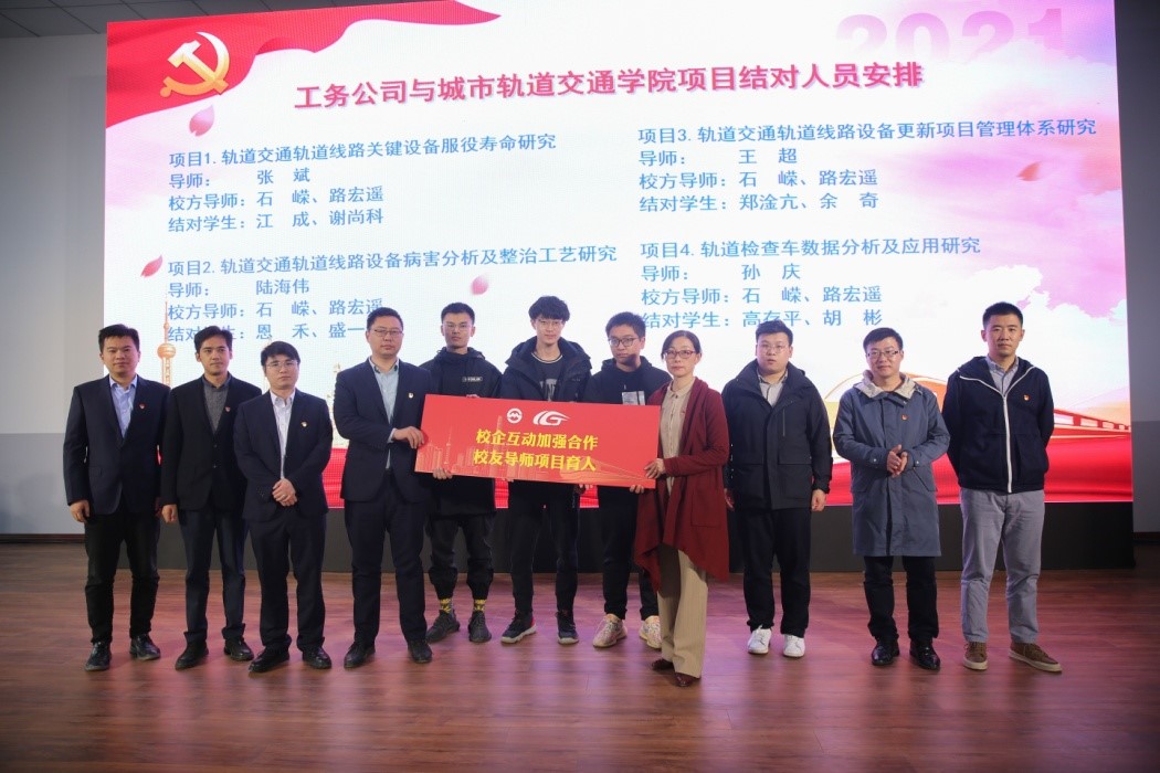 上海地铁维保公司党委书记王晶华致词时指出,工务党建联盟抓住了工务专业委外体量日益增大、运维质量把控要求日益增高、监管力度和难度日益增强的实际问题,探索出了一条党建和业务相融合,共同推进运维高质量发展的道路。会上,还对2020-2021年度上海地铁工务专业运维区域党建联盟工作进行了总结,对先进单位进行了表彰,各与会单位进行了工作交流,铁道工程系主任石嵘对我校铁道工程专业建设和人才培养情况进行了介绍。会议达成了2021年上海地铁工务专业运维党建联盟年度共识《齐心协力,以高质量党建推动高质量工务运维》,并宣布了新一年合作共建项目。城市轨道交通学院作为新晋成员,会上正式启动了校企合作暨工程大党员校友导师结对项目。