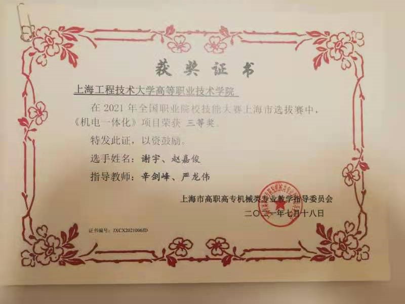 2021年,高职学院师生积极参与上海市高职高专院校机械类专业教学指导委员会举办的各类比赛,坚持“以赛促教、以赛促学,以赛促改、以赛促建”,以提高教师教学能力为核心,促进教师综合素质、专业化水平和创新能力全面提升,展现师德高尚、技艺精湛的新时代高职院校教师风采。