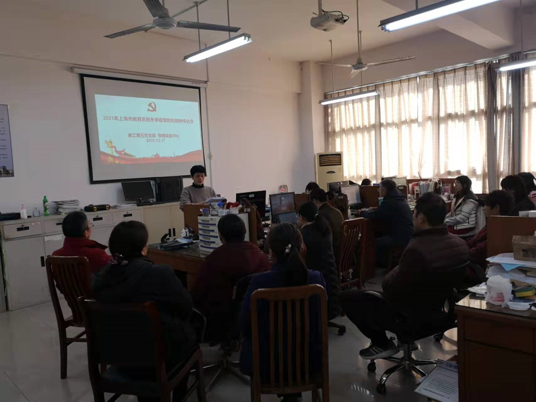 12月16日至17日,数理学生党支部和学生工作办公室,教工第五党支部和物理实验中心,教工第四党支部和应用外语教学部、翻译系,教工第三党支部通过线下线上结合的方式开展学习活动,传达了市教委王平主任传达国务院联防联控机制会议、市疫情防控领导小组会议及孙春兰副总理重要讲话精神;市教委倪闽景副主任布置校园冬季疫情防控相关工作精神;市教卫工作党委书记沈炜重要讲话精神。会议还解读了《疫情防控常见问题解答》,就严格落实疫情防控工作中常见的一些问题以及教职工和学生健康管理中应该遵守的一些政策规定向参会的教师进行了说明。