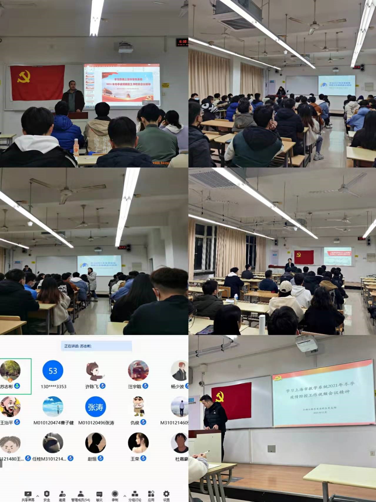 为全面学习贯彻落实上海市教育系统2021年冬季疫情防控工作视频会议精神,学院各党支部运用“线上+线下”相结合方式,实现全覆盖,及时将学校疫情防控措施落实到每个支部党员和群众,加强疫情防控政策宣传和思想政治舆论引导,无条件服从学校疫情防控工作部署,确保学校防控工作要求传达迅速、落实有力、反馈及时。