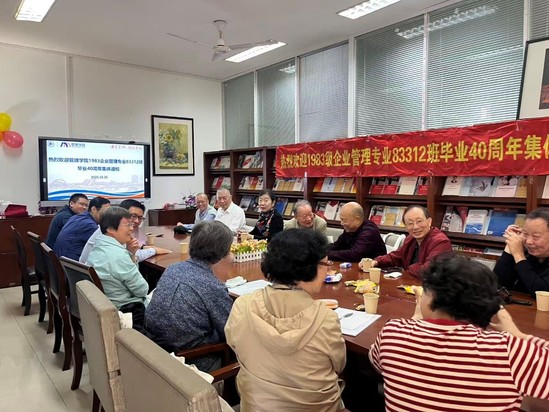 “菁”管起航——秩年校友班级集体返校。企业管理专业83312班毕业40周年,与时任83312班辅导员顾惠云老师、康光毅老师和班主任陈明老师相聚,深深感恩母校和老师们的培养。