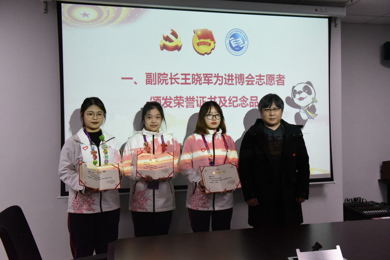 王晓军副院长为三位志愿者颁发了荣誉证书及学院纪念品。