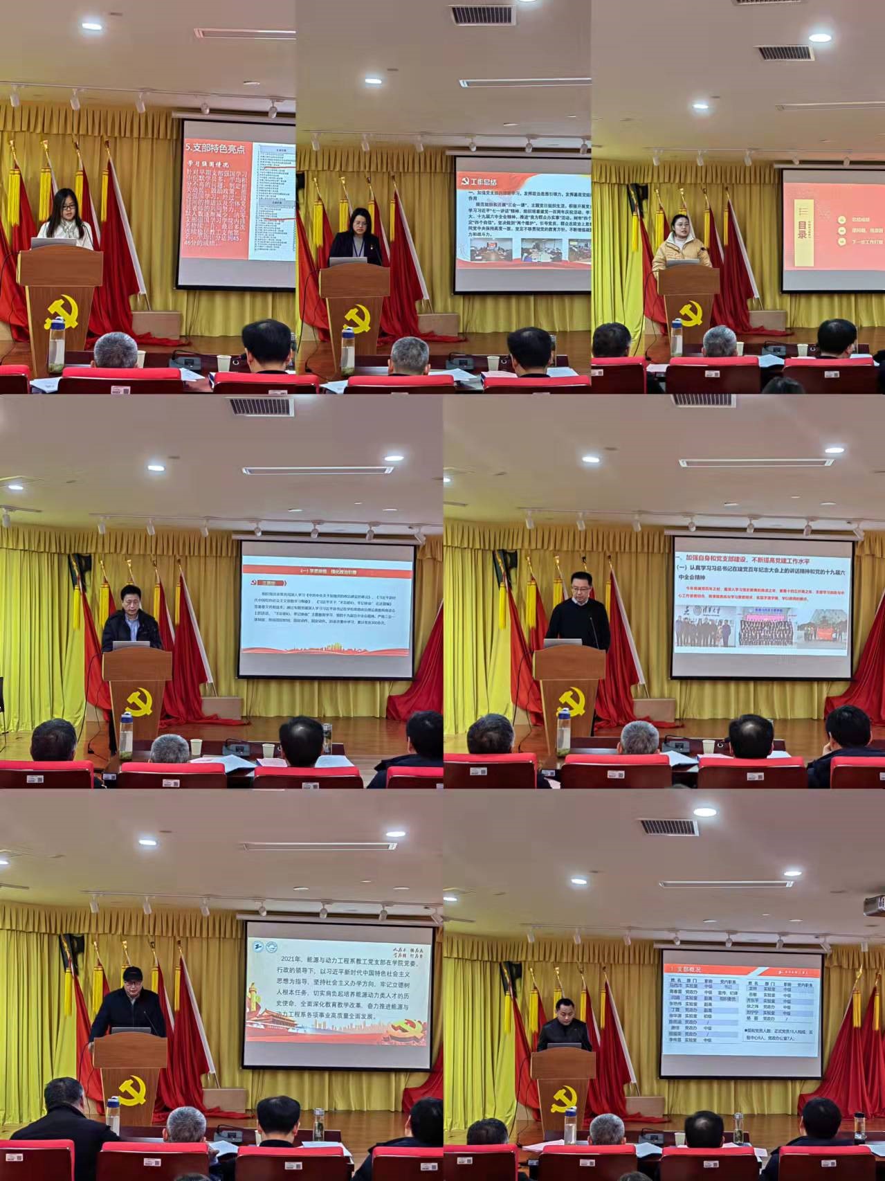 机械设计系教工党支部书记张旭、机械制造系教工党支部书记苗晓丹等7名教工党支部书记分别结合支部一年来取得的成绩,存在的不足和下一步工作举措等三方面进行了汇报。