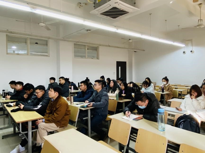 于凯副院长指出,学风是立身之基,是治学之本,学风建设对于人才培养极具重要作用,不断加强学风建设,有助于促进研究生全面发展。他强调,马院研究生切实加强学风建设,应做到:一要“讲政治”。学风建设是中国共产党人加强自我修养的重要维度,马克思主义理论学科的青年研究生,作为新时代中国特色社会主义事业的接班人和青年思想政治工作的后备军,要心怀“国之大者”,把学风建设作为提升个人修养的重要维度。面对研究生生涯中可能遇到的问题与挑战,同学们要秉持“党建引领学风”的理念,踏实为人、勤奋做事、严谨治学,不负学校和学院对大家的厚望;二要“有觉悟”。同学们要高度重视学风建设,提高人生觉悟,从做好“时间管理”和“情绪管理”这两个关键点入手,既立足高远,又脚踏实地,做好生涯规划,合理“谋篇布局”,切勿急功近利、一曝十寒;三要“有耐心”。“积水成渊,聚沙成塔”,希望同学们继续保持每周写作读书笔记的良好习惯,认真总结上一学期累积的学习经验,搞清楚“过去为什么能够成功”,弄明白“未来怎样才能继续成功”;四要“有韧劲”。同学们要勇担社会责任,提高集体荣誉,练就过硬能力,养成优良作风,努力成为有理想、有本领、有担当的新时代青年,肩负起新时代使命。