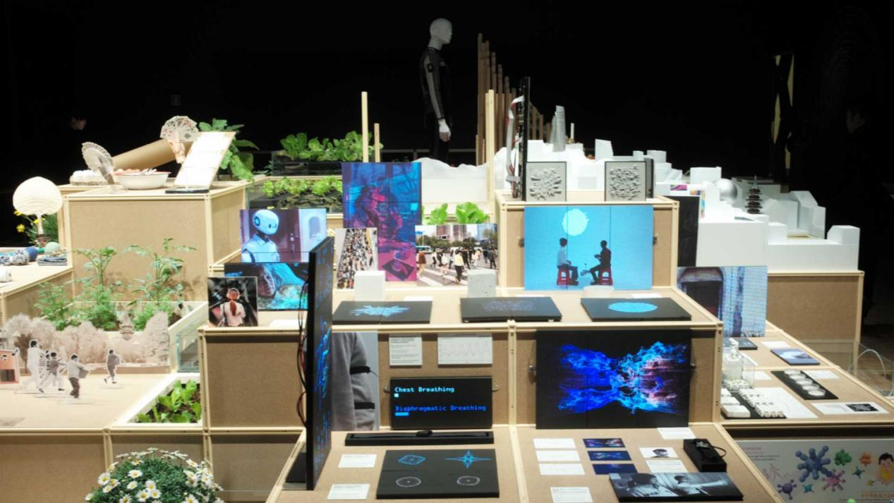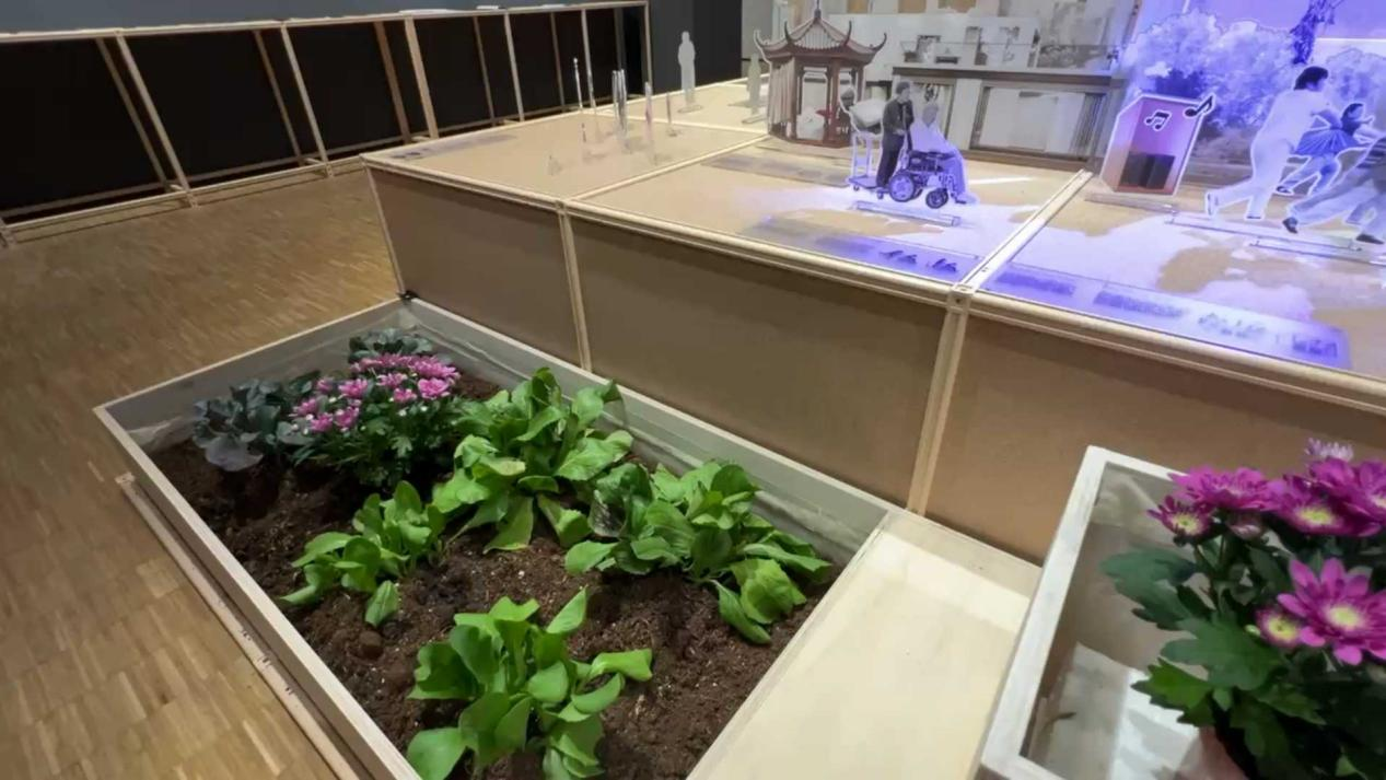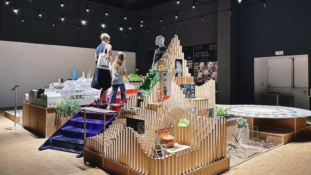 展陈形式同样呼应“动平衡”的理念。入口以山形起伏与循环水系构成抽象“山水”,提示人与自然之间的关系可以被重新编织;“大食物”板块通过饮食、物流、土地利用的故事展示一口食物牵动的全球体系;“多元老龄”让老年人的日常回到叙事中心,促使观者重新思考“老去”意味着什么。