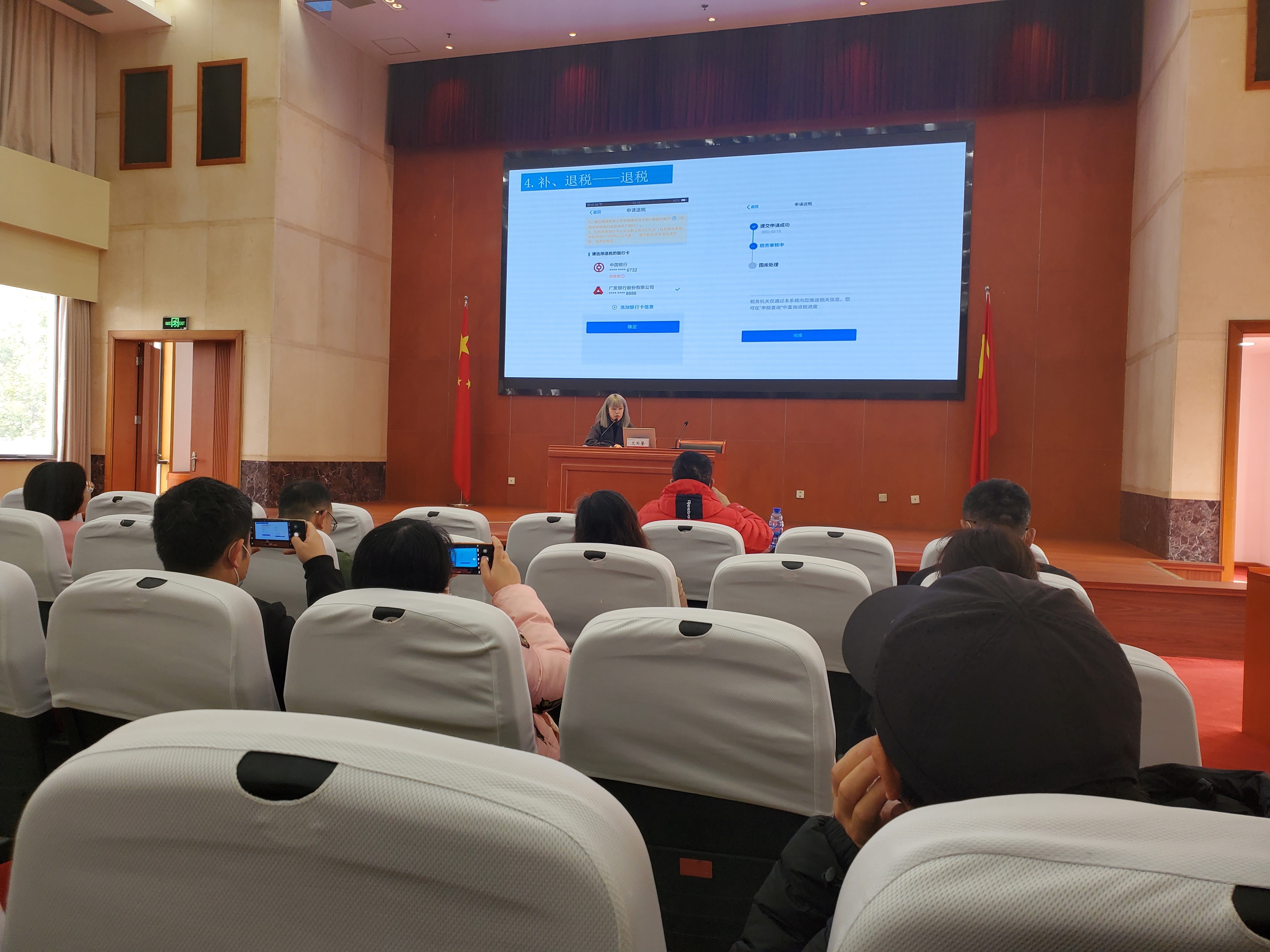 讲座结束后,支部的党员同志或协助在场师生申报综合所得年度汇算,或解答专项附加扣除等政策的咨询,或接受其他财务报销问题的咨询。
