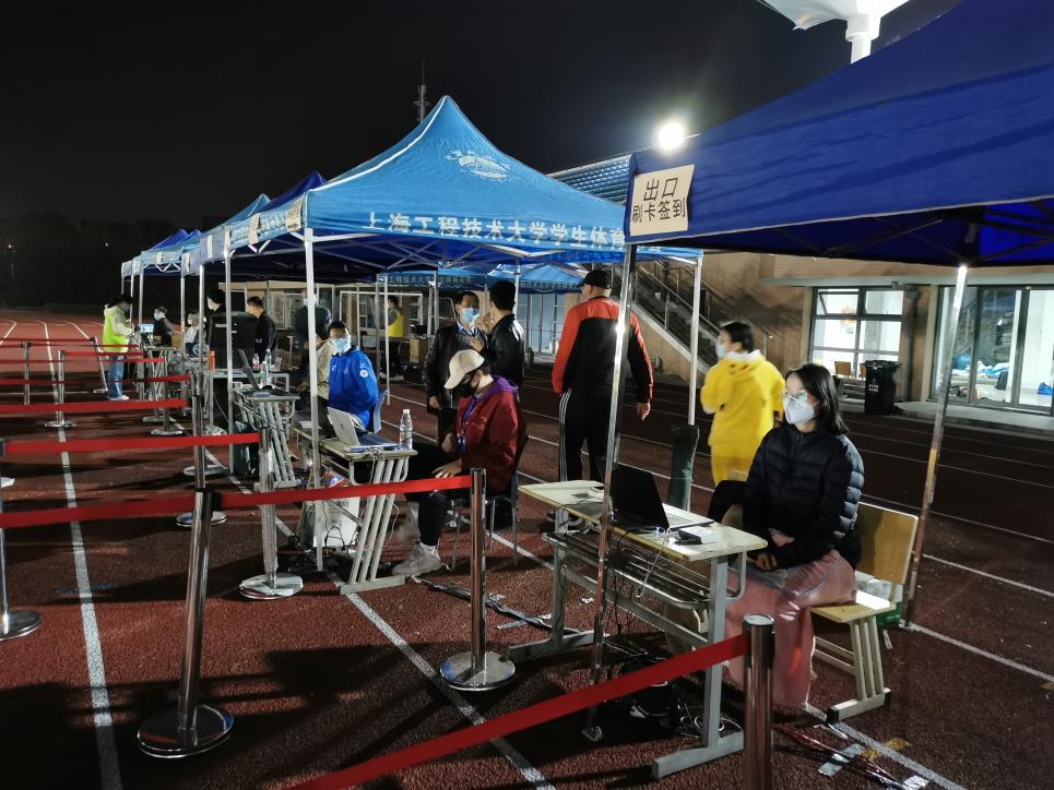 三天的检测工作,总量约40000人次的签到工作量。说话到嗓子发哑,举手到胳膊发酸;下午太阳晒到身上冒油,晚上冷风吹到直打哆嗦。信息办的老师们一直坚持到最后,纵黑夜如墨、披星戴月也无怨无悔。他们用自己的行动唱出了一曲动人的奉献之歌,他们内心认定了防控就是责任,他们用自己的行动和大家共同“防疫”,守护学校、守护上海。