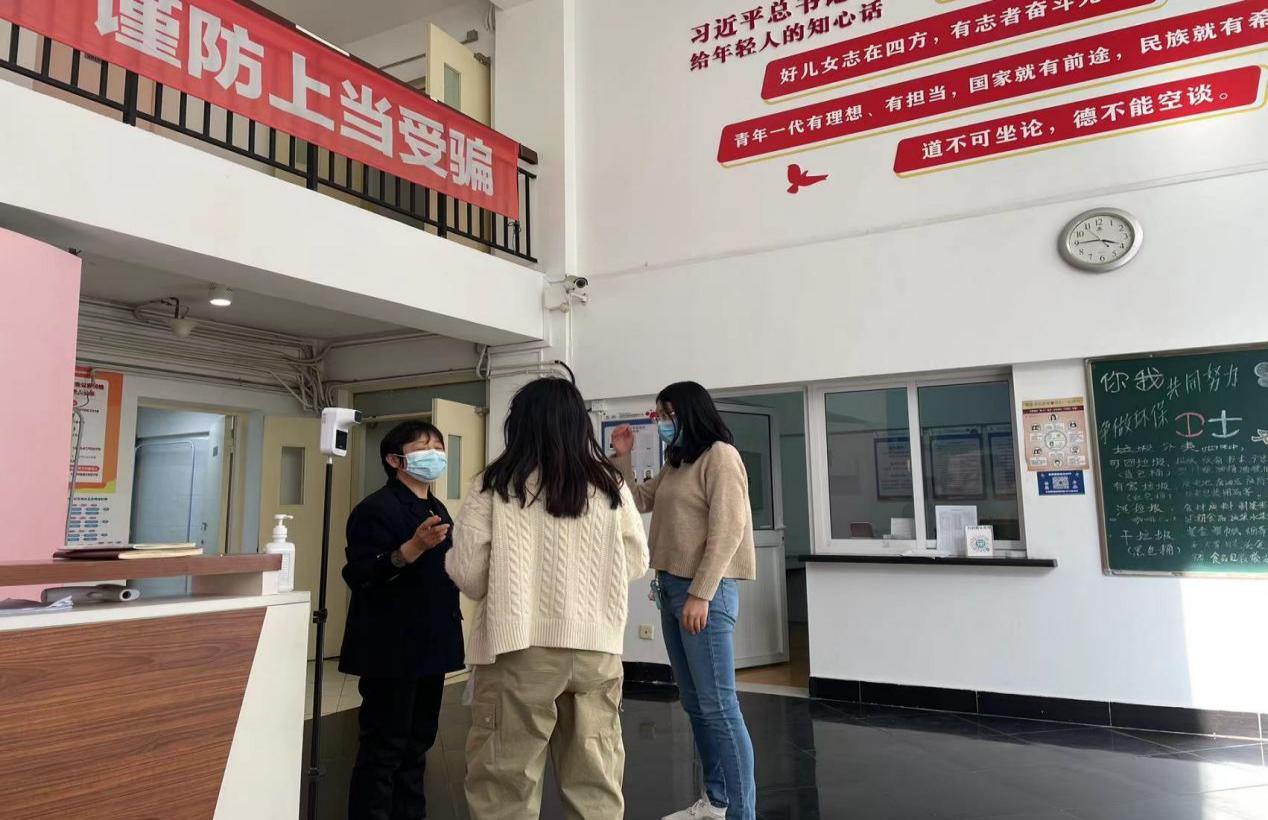张晓飞老师赶在小区封闭管理之前,自驾帮助学生运送电脑,辗转多次只为同学们不耽误学习工作。刘铁英、高艳杰、刘慧三位老师一直坚持与学生及时互动,帮助学生解决一切小难题。更有李豪、席琪、郭丽娟三位老师留守校园,坚守在校园疫情防控工作现场,主动投入到校内疫情防控的各项工作中,他们细心解答在校学生的各类问题,主动帮助校外研究生运送学习电脑,深夜里在核酸现场维持秩序,此时此刻的他们,就是校园里最坚定不移的守护者。