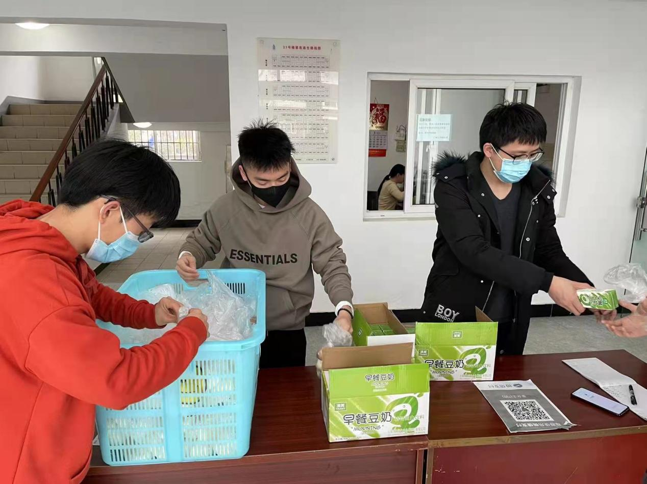 校园封闭管理后,六期学生们的三餐问题亟需解决。学院学生党员们充分发挥先锋模范作用,自发组织并参与到志愿服务之中,他们有人负责到对应楼层喊人、有人负责人员签到、有人负责协助送餐,分工协作为同学们带来最真挚、最暖心的服务。学生党员付贵伟作为六期31号楼的负责人这样说到:“疫情防控,党员先行,现在就是同学和学校最需要我们的时候,能够做这些事情是我的荣幸!”。与此同时,学院梅是菲老师组织的志愿者们,也正在行动中,他们是核酸现场的秩序员、是宿舍管理的协调员、是疫情防控知识的宣传员,学校各处都有着他们忙碌的身影,为他们无私奉献的精神点赞!