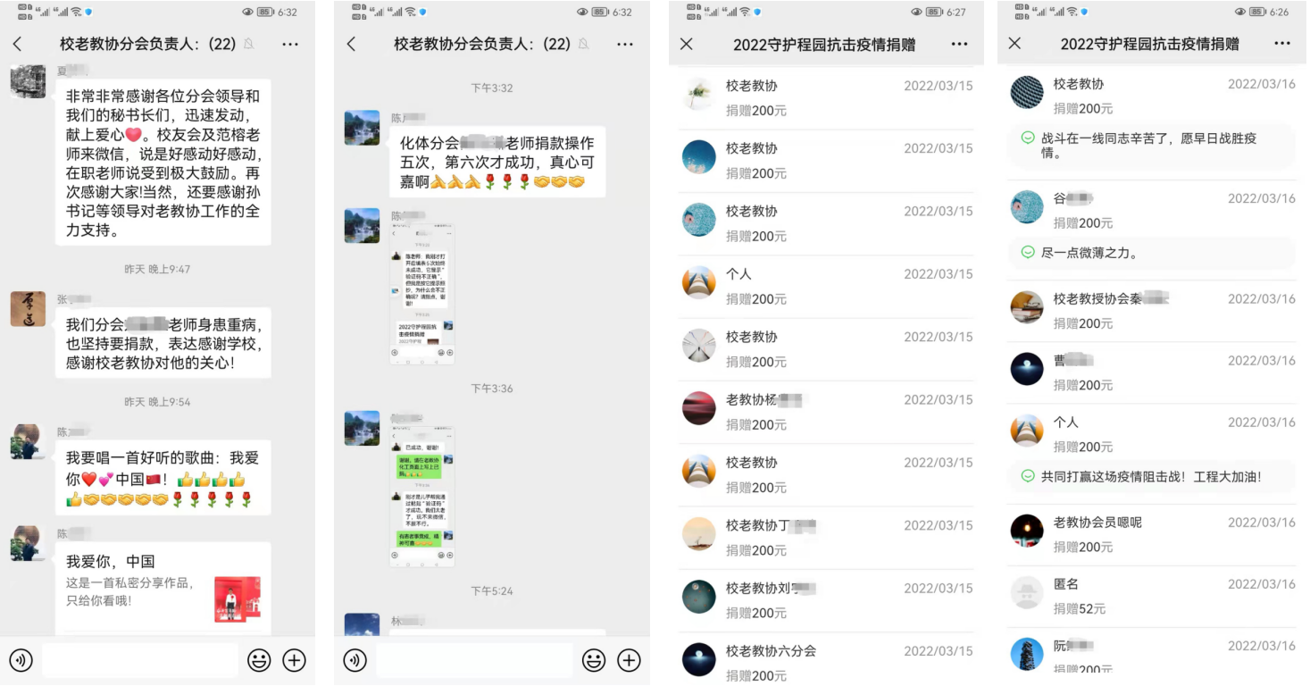 大疫面前,大爱浮现。在校友会发出“2022守护程园抗击疫情赠”活动后,校老教授协会第一时间发动了“抗疫200行动”,倡议会员们自愿捐助200元以表达老教师对教职员工及青年学生的关爱,表达校老教授协会支持学校抗疫工作的点滴心意。