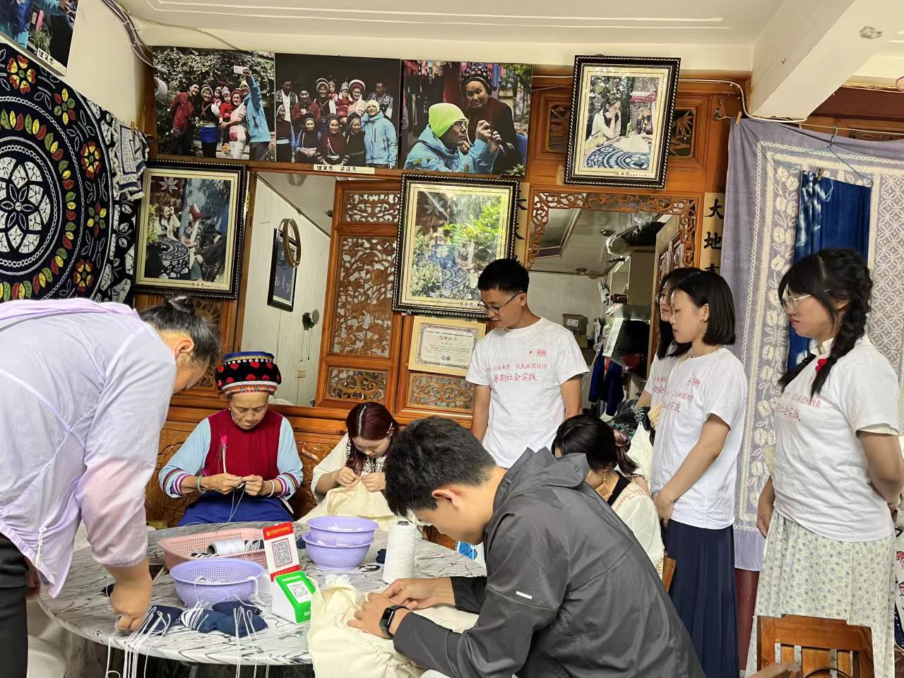 学院党委秉持“学用结合、知行合一”理念,推动党员教育向实践延伸、向基层扎根。服务所长温暖社区邻里。组织“小服星”党员志愿者深入松江区社区,联合区爱心助困志愿者协会开展“爱心流转,织就程园温度”衣物回收公益行动,设立公益集市义卖摊位,将专业知识融入志愿服务;党员开设“共享课堂”“社区党课”,讲解服装科技与艺术内涵,推动“一个支部一件实事”落地见效。指导党支部与广富林街道共建,开展廉洁文创讲解,促进党性锤炼见行见效。行动所长助力文化振兴。组织师生党员赴云南开展“织七彩云南梦,促民族团结情”实践活动,深入山区触摸非遗根脉,进行乡村文化调研,通过民族服饰互动、图案设计指导助力文化传承;组织党员深入社区开展盘扣、扎染非遗文化活化课程,以专业技艺唤醒文化记忆。专业所长赋能乡村建设。将专业实践课堂设在车墩镇长溇村田间地头,组织党员协助梳理村史文脉,设计乡土特色织物印花;为村内志愿者设计主题志愿服装,参与村史馆暨丁娘子布艺馆建设,推动红色资源与乡土文化共生共融,实现“党建红”与“乡村美”同频共振。