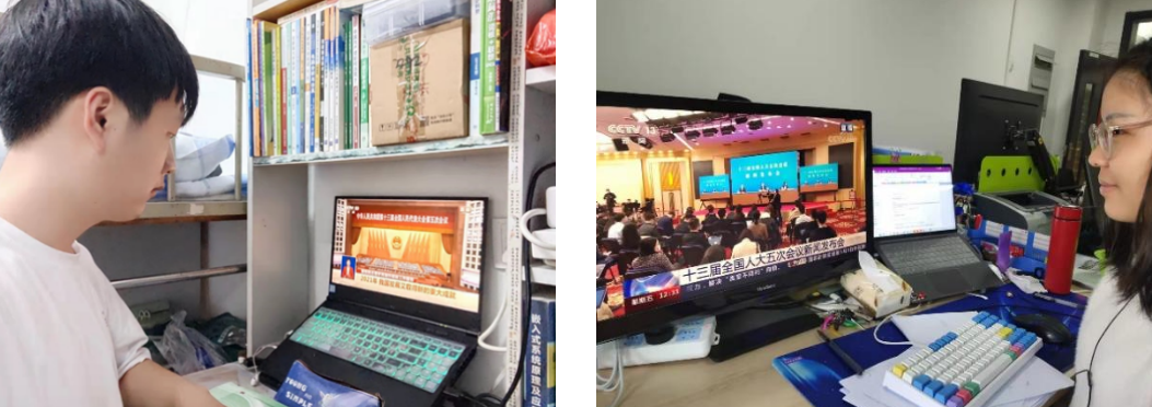 与会人员就贯彻落实“两会”精神进行了深刻交流。同时,学院党委积极部署,各个党支部党员积极响应,结合疫情防控要求,各支部通过线上集中学或自学两会精神,营造了良好的学习氛围。