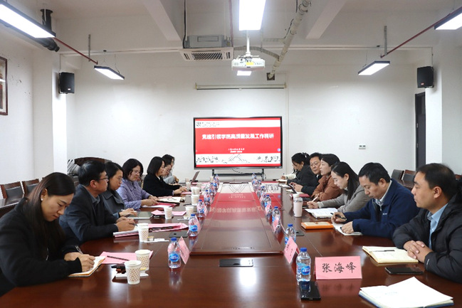 朱晓青全面听取了学院党委关于基层党建、统战工作、教师思政及师德师风建设、工会工作年度亮点及后续工作思路的汇报,并对学院开展党建引领高质量发展工作提出要求:一是加强政治引领,要深入贯彻落实党的二十届四中全会精神,精准把握全会精神实质与实践要求,夯实组织根基,凝聚思想共识;二是深化融合赋能,要坚持将党的工作嵌入人才培养、学科建设、科学研究、社会服务等全过程中,锻造坚强战斗堡垒,以国家战略需求为导向,全面提升党建引领的深度与广度;三是强化教师队伍担当,发扬教育家精神,引导教师做学高为师、身正为范的大先生,守好师德师风底线;四是做好服务与安全稳定工作,一方面激发群团活力,厚植教职工创新文化,另一方面压实责任,以安全稳定的环境为学校各项事业发展保驾护航。