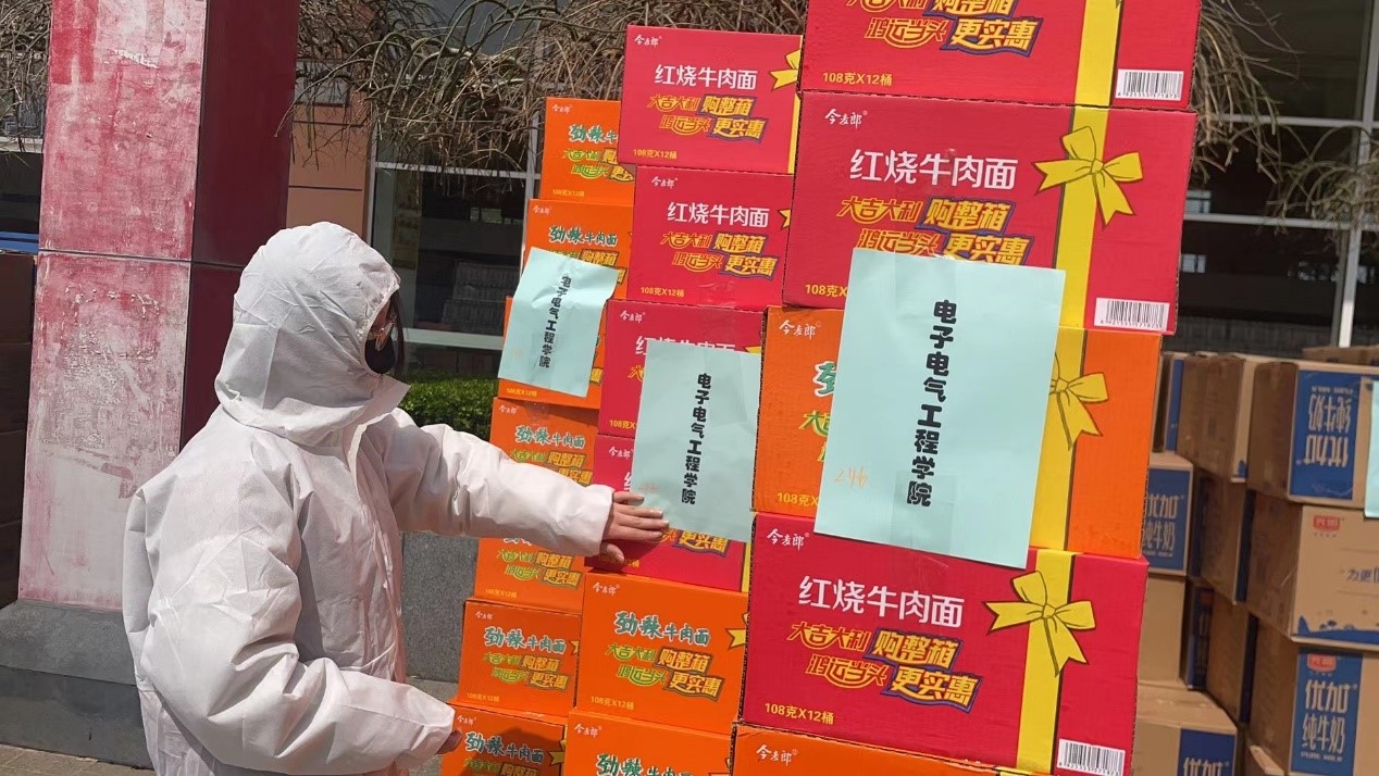 疫情无情,程园里却洋溢着温情。三月份以来,伴随着一场场春雨,天气和疫情的双“倒春寒”让人们感受到上海的春寒料峭。在学校准封闭管理期间,为确保家庭经济困难学生生活有保障,安心学习和生活,学校为他们购置了爱心大礼包,包含牛奶、方便面、沙琪玛和口罩等物品。