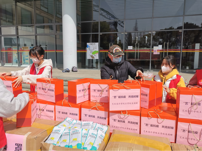 近日,艺术设计学院2010级杰出校友、上海此中电子商务公司董事长及“小耳出品”品牌创始人王芳女士,第一时间联系学院,对抗疫一线的师生们表达了真诚慰问,并慷慨捐资30万元注入“上海工程技术大学教育发展基金会”,用于“艺术设计学院教育事业发展及疫情防控工作”。3月24日,首批捐赠的医用口罩50000个、生活食品礼包1000份等疫情防控物资运抵学校。艺术设计学院党委书记袁蓉代表学校对王芳校友心系母校、急母校所急,为母校慷慨捐赠送防疫物资表示诚挚的感谢。艺术设计学院党委副书记、院长高瞩目代表学院接受了捐赠。