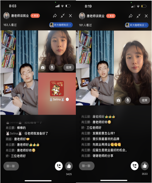 直播活动获得了同学们的好评和点赞,他们纷纷表示收获满满。