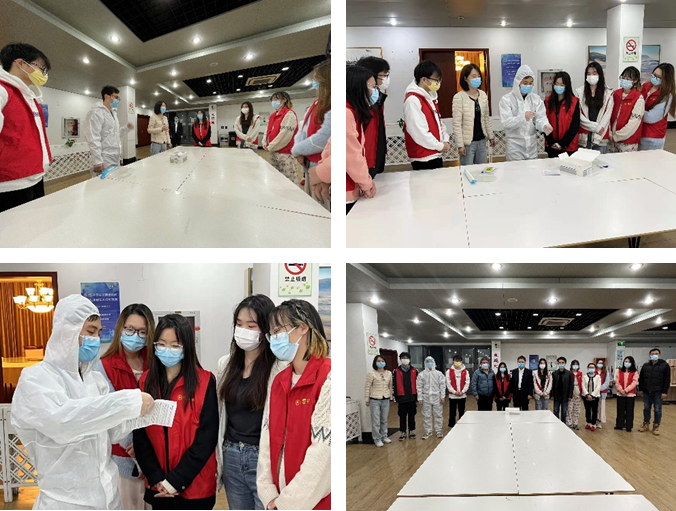 同时,为切实做好疫情防控志愿服务工作,使志愿者全面深入了解疫情防护相关知识,确保能够及时、有序、快速、安全地开展疫情防控志愿服务工作,3月25日,在长宁校区疫情防控专班的统一领导下,辅导员李永贺组织志愿者开展了新冠抗原检测试剂盒使用的培训,针对防护服的使用和自测废弃物的处理方法等进行了细致讲解,并提醒志愿者在疫情防控期间要做好个人防护,提高个人防控意识。会后,志愿者们纷纷表示,通过本次培训,明确了抗原试剂盒的使用,进一步掌握了疫情防控知识,将严格按照学校疫情防控安排,踊跃参与到现阶段防疫工作中去。