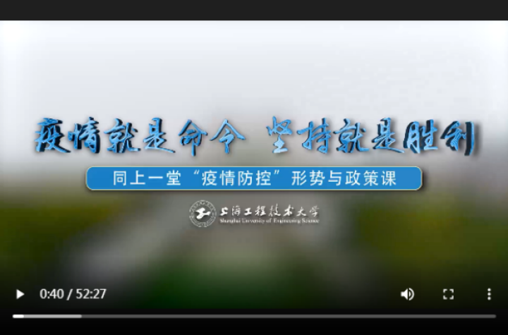 上海工程技术大学“抗疫”主题形势与政策课是将伟大抗疫精神有机融入思政课教学的尝试与探索,旨在贯彻落实习近平总书记关于疫情防控的重要论述以及深化思想政治理论课改革创新的重要指示,助力广大师生增强战胜疫情的信心决心,为打赢疫情防控阻击战汇聚磅礴力量。中国人民抗击疫情的实践是最鲜活的形势政策教育素材,上海工程技术大学同上一堂形势与政策课也是深化政治思想引领、强化对大学生行为引导的有效举措,云端思政大课深度挖掘其中的育人元素,也是对“生命至上,举国同心,舍生忘死,尊重科学,命运与共”抗疫精神的真切弘扬。