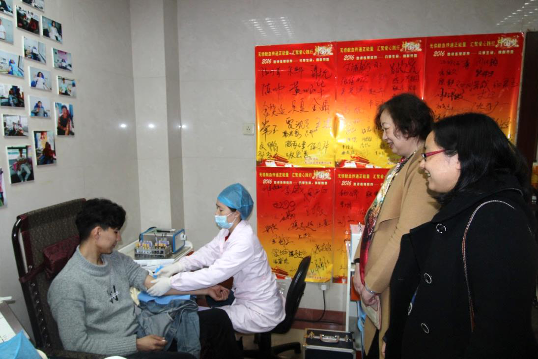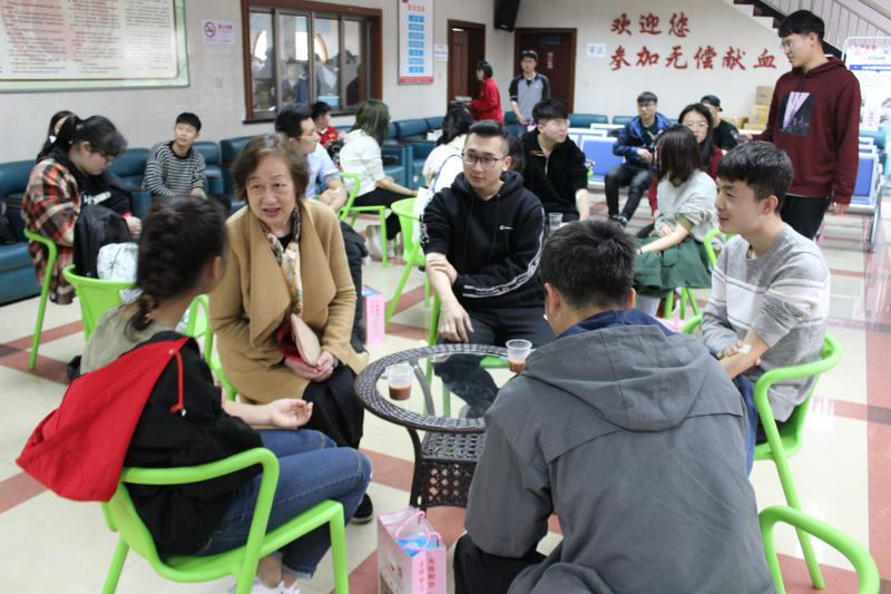 我院党委书记刘宇虹,党委副书记熊筱晶到现场慰问献血的同学们。在院领导的亲切关怀下,辅导员老师、志愿者们的鼓励帮助下,活动现场充满了轻松而温馨的气氛。