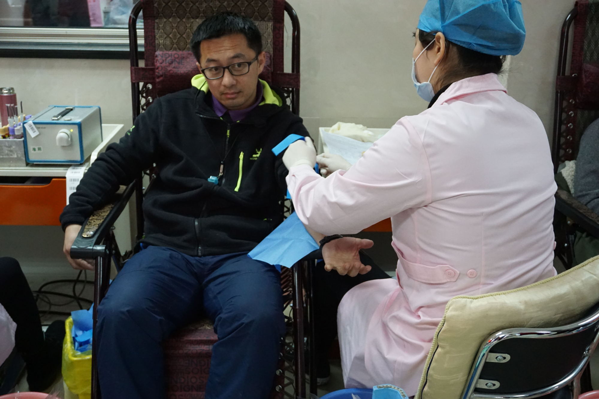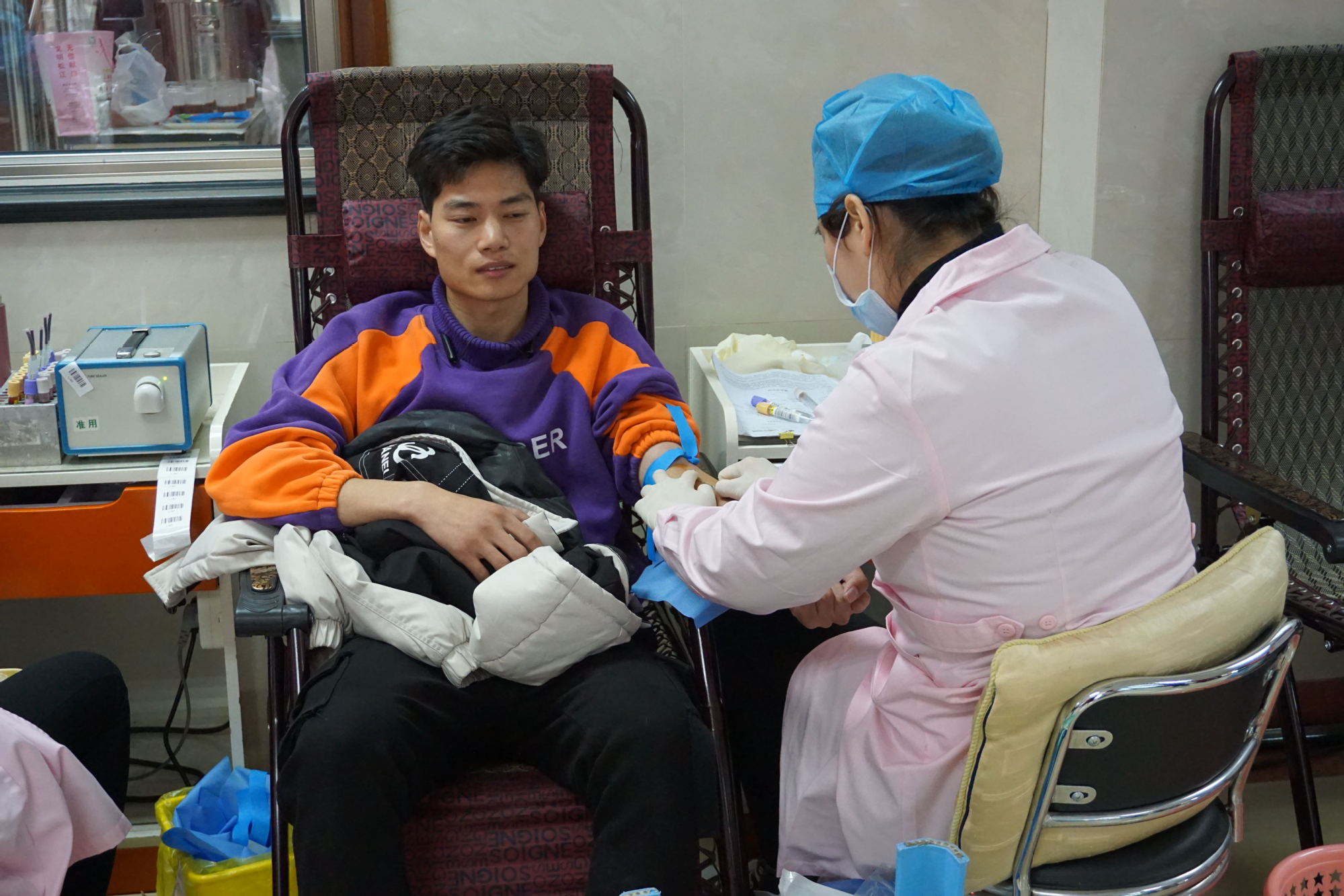 学院教师江磊第一个进入采血间,给同学们作了很好的表率。在众多献血者中,学生党员表现出了积极的带头作用,体现了无私的奉献精神。大四学生党员李豹已经是第4次参加无偿献血活动;退伍学生、党员胡维德展现了退伍不褪色的军人品质,共计6次献血;学生党员闵涛、王雅欣、金薇薇、王昊等均是多次献血,用实际行动诠释共产党员的先锋模范作用。