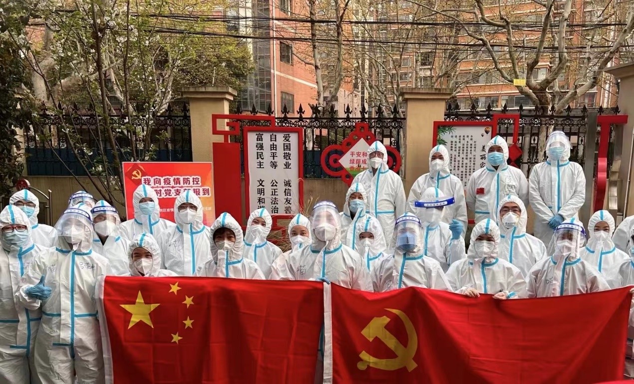 当前,上海疫情防控面临最严峻的挑战,疫情形势十分复杂,防控任务极其艰巨,国教世赛党支部坚决贯彻习近平总书记重要讲话和指示批示精神,迅速响应市委市政府疫情防控各项决策部署,将疫情防控作为当前头等大事,将打赢疫情防控的大仗硬仗,当作必须扛起的重大责任。国教世赛党支部全体党员闻令即动、听令而行,主动融入疫情防控大局,认真落实“双报到”“双报告”制度,下沉社区参与疫情防控志愿服务工作,在疫情防控一线亮身份、当先锋、作表率,共筑疫情防控战斗堡垒。披“白衣”、着“蓝褂”的他们,虽然很难认出是谁,但他们是一道道最亮丽的风景线,他们勇挑重担,主动作为,展现了国教世赛党支部教师的责任和担当。
