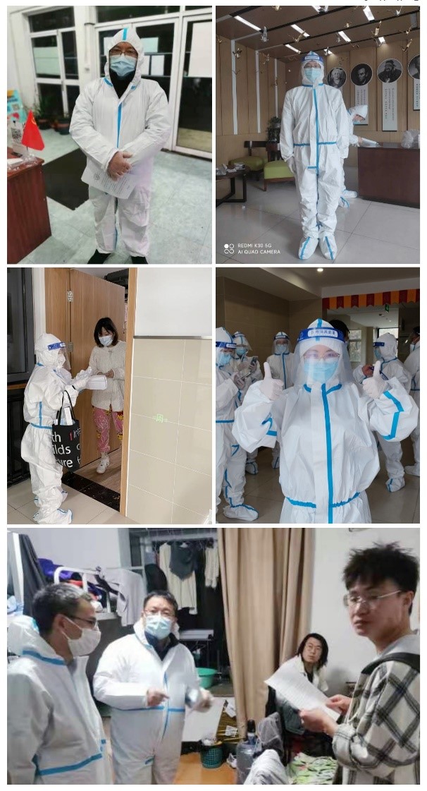 在校内,为保障人事人才工作顺利开展,教工部、人事处刘福窑老师、张宇清老师、孙守印老师、杜周杰老师、赵忠祥老师、徐亚楠老师先后进校,在平时业务培训的积累下,化身多能手,既保障人事服务不打烊,在出现紧急情况时又变身大白,奋战在疫情防控第一线。