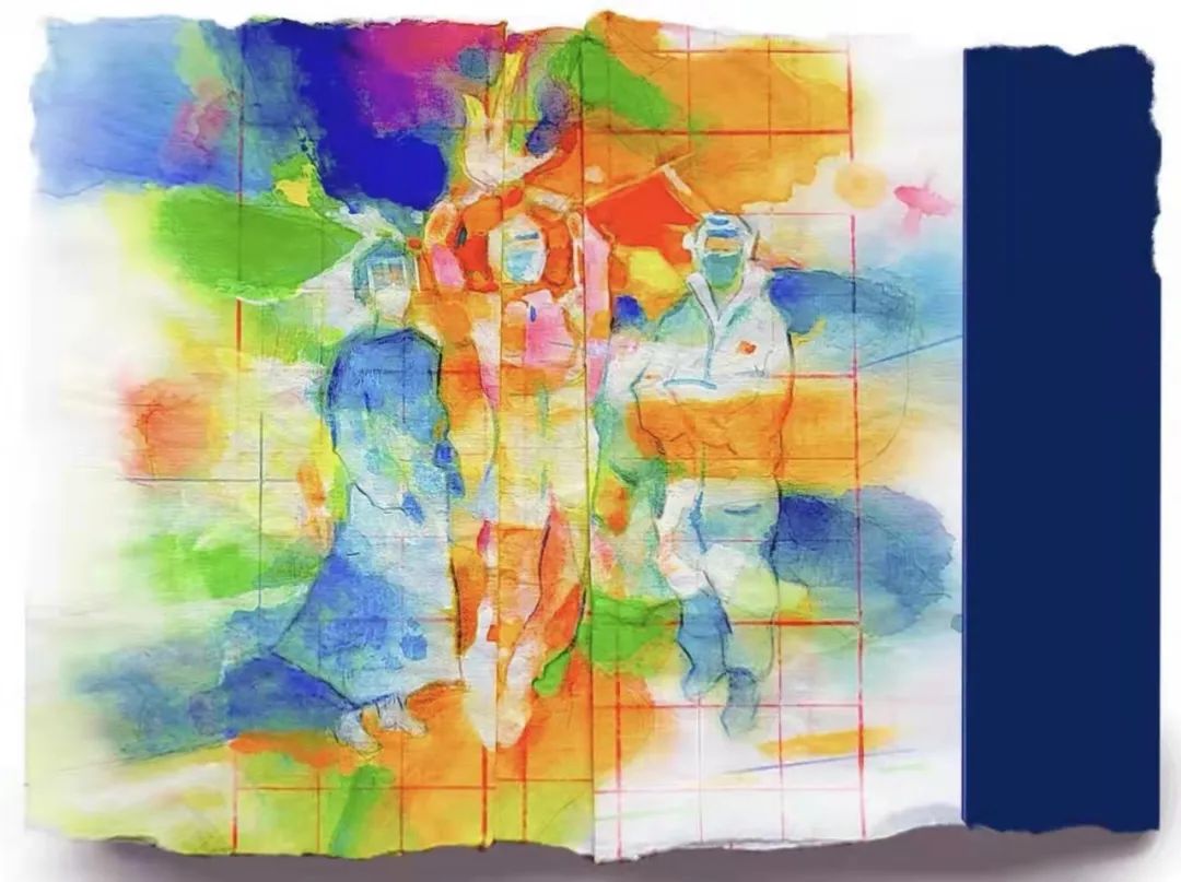 画家平龙说,这几天看见了很多令他震撼的场景:建设方舱医院日夜不息的灯火,驰援上海运送物资的车流长河……他希望通过画作传递出中国勤劳的建设者们不负韶华只争朝夕的“中国速度”。