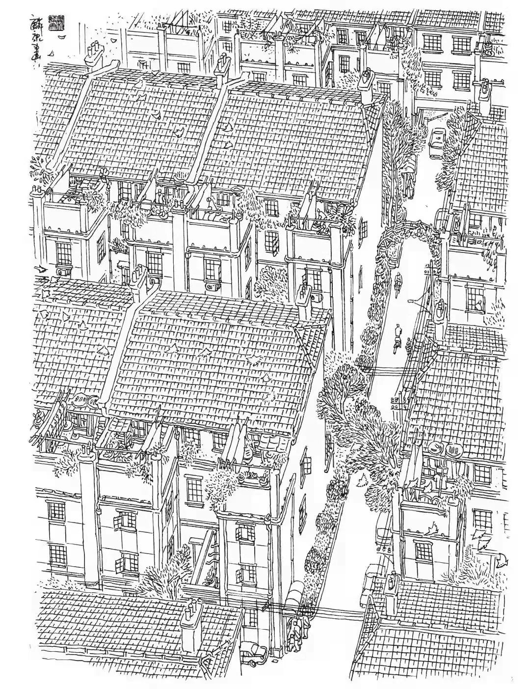 桑麟康 《上海屋檐下,东方破晓时》白描
