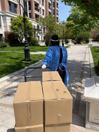 暂不具备进校条件的任乾乾同志在校门口辅助园区企业解决应急所需,现已进入长宁校区加入专班工作队伍。