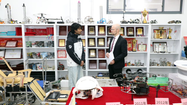 期间,Turo Kilpeläinen参观了西门子先进自动化技术联合示范中心、波音737-800模拟机项目、上海高校创新创业教育实验基地、创芯实验室等教学科研平台,并参观了艺术设计学科相关实验室,进一步加深了对我校办学特色和实践教学体系的了解。