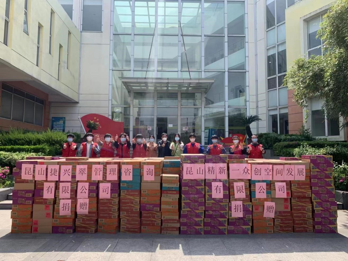 赵健副教授曾挂职担任昆山周市镇党委副书记,是江苏省第十三批科技镇长团成员,苏州市优秀团员。他在得知学校和学生情况后第一时间联系了昆山市优秀企业家、昆山精新一众创空间发展有限公司、昆山捷兴翠管理咨询有限公司董事长吴秀琴女士向我校学生提供物资援助,前后不到20个小时,整整900箱方便面(捐赠资金达6万多元)就连夜送到了学校,校企同心更加坚定了广大师生共同战胜疫情的决心。