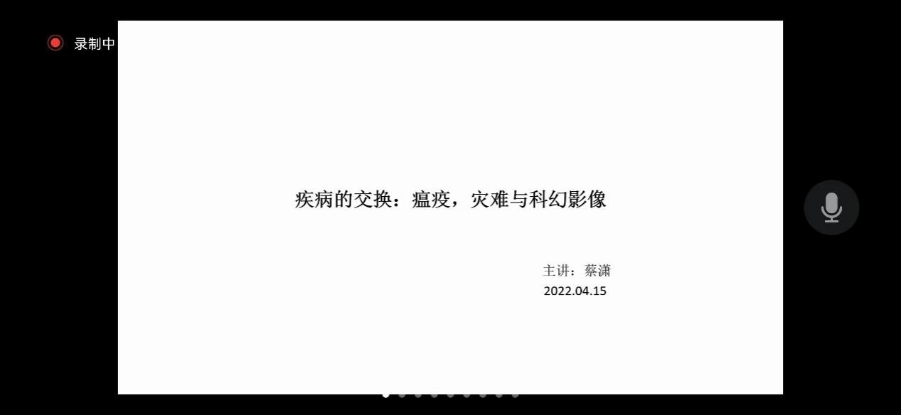 为了贯彻落实学校在疫情期间要求“导师进一步加强研究生教育”的要求,充分发挥研究生导师在疫情防控中的积极性、主动性,增加导师与研究生联系交流的频度,夯实导师与研究生学业指导的深度,拓展导师与研究生交流内容的广度,学院发动导师们开设“导师云约”系列讲座。要求研究生导师在云端与学生们探讨最新的学术进展,分享研究成果,畅聊学术和生活,指导学生在疫情期间的心理困惑与学业进展。“导师云约”系列讲座预计开设8场,持续至5月底,讲座以报告和沙龙的形式开展,主题涉及学院教师不同的研究方向,从医学与人因工程到瘟疫与科幻电影再到学生在隔离期间的服饰搭配,心理调适。让学生能于疫情期间既获得知识与思想的启迪,同时能以积极的心态面对抗疫生活。第一场学术沙龙已于4月15日开讲,由蔡潇老师与同学们一起探讨瘟疫与灾难在艺术作品中的再现伦理。结合当前的上海疫情,引导学生思考疫情中繁杂的信息流与个体生命状态。