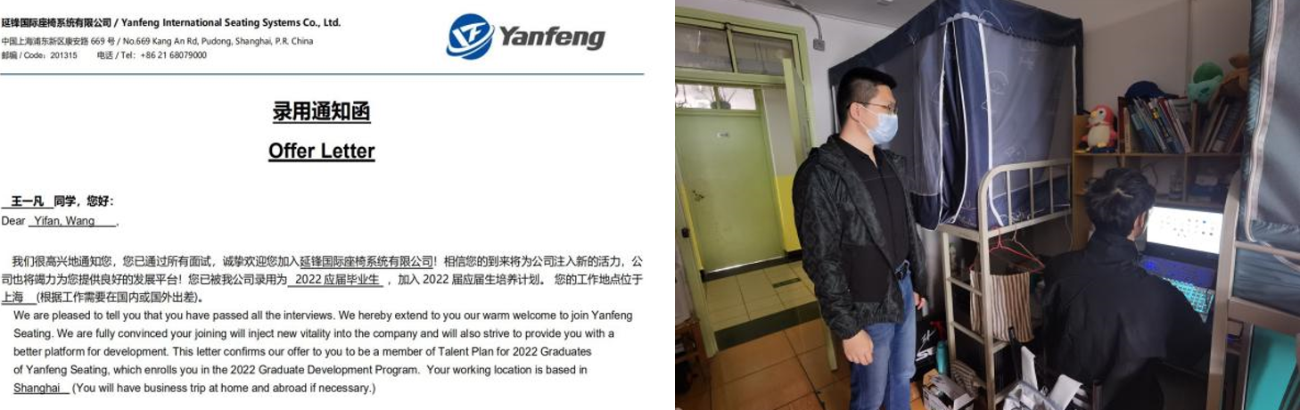 车辆工程学生党支部书记、就业辅导员刘晓婷老师了解到车辆工程专业毕业生王一凡同学想要留在上海发展,主要考虑汽车行业相关的用人单位,便为他推荐了延锋座椅、上汽大众等招聘信息。近日,王一凡同学激动地发来消息说:“刘老师,我刚刚收到了延锋座椅的录用通知函,已经和公司沟通了走网上签约的方式。”对刘老师来说这无疑是她这段时间听到的最令人开心的消息。研究生第三党支部书记、辅导员邓力老师第一时间返校开展工作,一手抓防疫,一手抓就业,通过走访寝室,谈心谈话了解研究生毕业班的就业动态。全体毕业班辅导员始终坚持就业基础数据的动态排摸,做到数据“日日清、周周报”。聚焦学业困难、就业困难、考研二战、慢就业等群体,建立了精准细致的就业指导工作台账,实施分类指导,为学生答疑解惑,做好暖心服务。