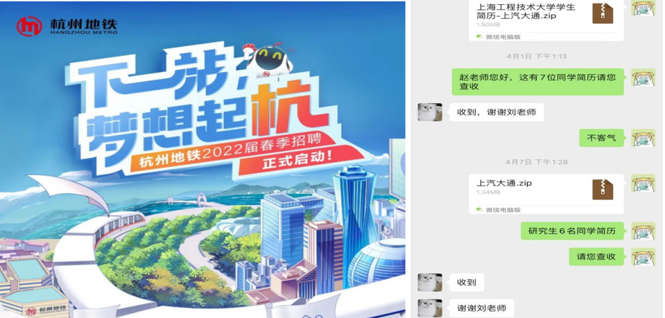 “工程大是我们公司重要的人才蓄水池,我们已经决定破例为工程大举行一次线上招聘。我们还从来没为哪个学校开过线上招聘会,你们是头一次。”杭州地铁运营有限公司招聘经理夏丽莎说道。不止杭州地铁,还有上海华力、上汽大通、延锋座椅、中铁电气化局、申通北车等企业HR都主动表达可以采用线上招聘并已接受100多份学生简历。企业导师们“云带教”指导毕业设计,在防疫保障的之余化身“网络主播”,为已签订就业协议的毕业生视频直播运营保障一线情况、细致讲解工作内容,积极开展毕业生“云实习”。