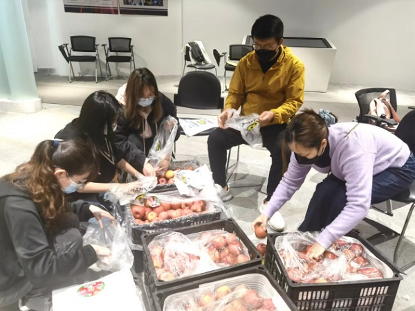 4月12日,艺术设计学院产学合作企业达利丝绸(浙江)有限公司捐赠20万只防疫口罩和40箱苹果,从浙江绍兴出发,爱心驰援全力支持防疫工作,这批物资已经送抵学校,在特殊时期为师生增添一张安全网。艺术设计学院党委书记袁蓉、党委副书记刘江、学校后勤领导和学办辅导员老师们参与此次捐赠活动。