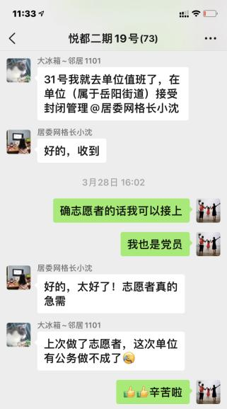 积极参与各项志愿者活动。团队沙玲老师、岳敏老师主动请缨,参与到核酸检测、发放抗原试剂、发放政府物质、巡逻等多项志愿活动中,一项项看似简单的工作,却完美诠释出老师们的责任与担当。