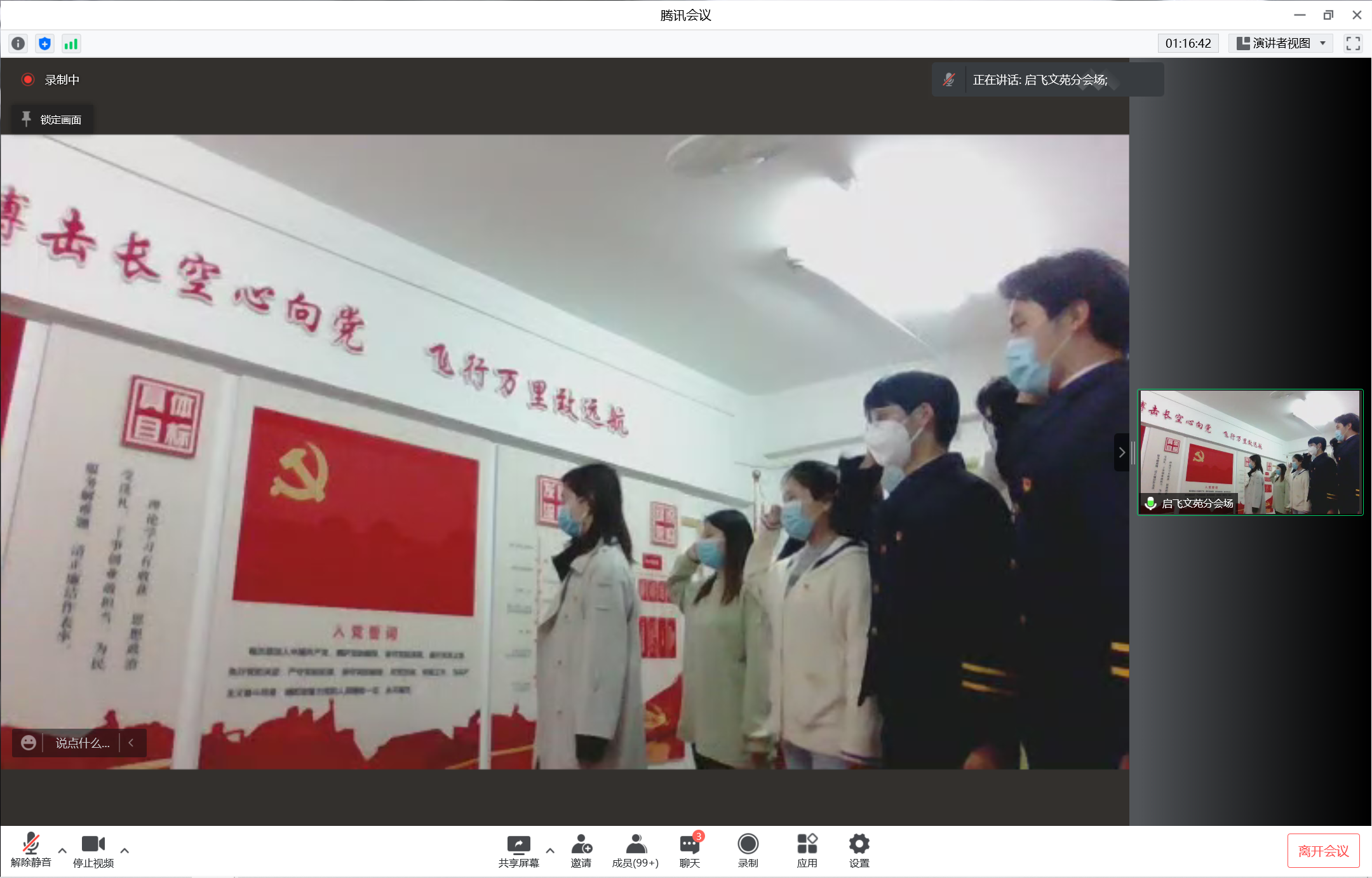 第二场活动“重温入党誓词”在三期16号楼“启飞文苑”工作室举行。赵晓艺老师带领学生党员们庄严宣誓,号召党员们走在前、作表率,进一步统一思想、全力以赴、尽锐出战,担子挑起来,责任扛起来,配合学校学院将各项工作执行到位、落实到位。