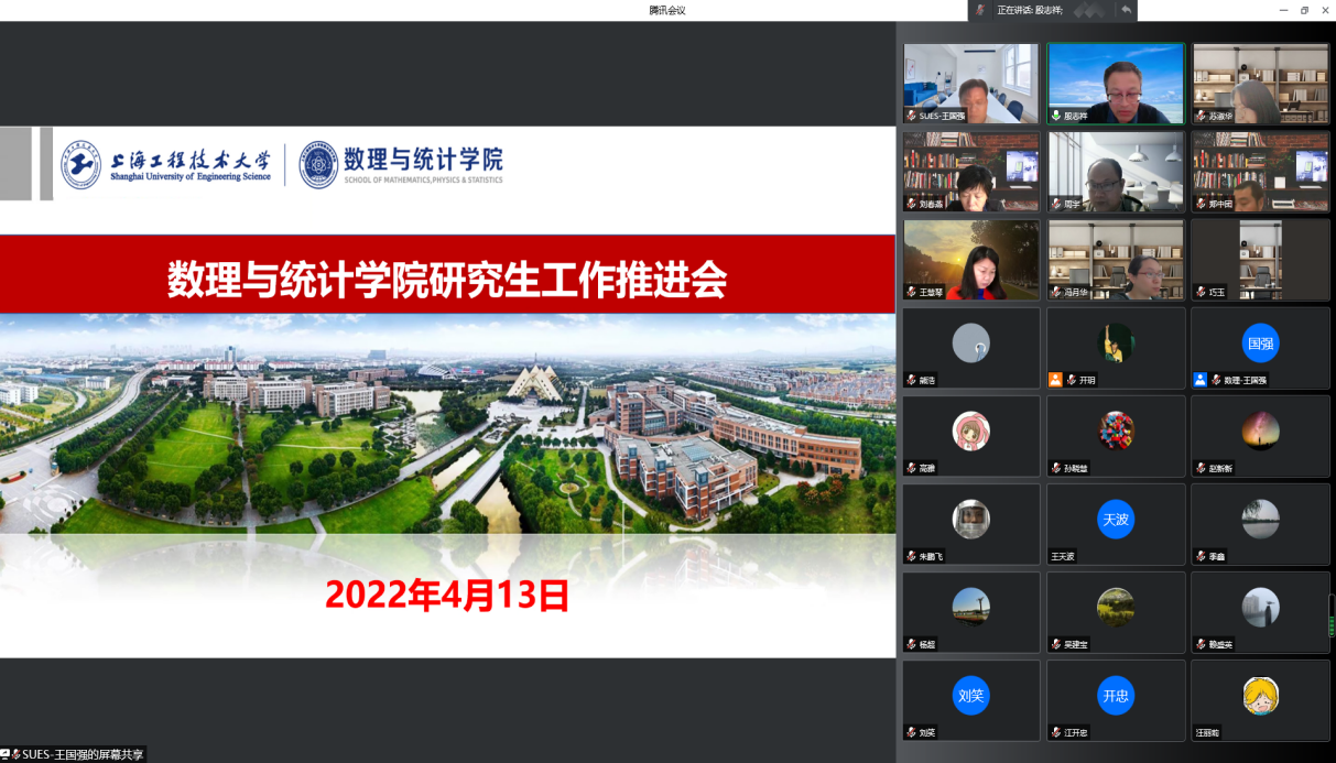 根据学校《关于疫情期间要求“导师进一步加强研究生教育”的通知》要求,数理与统计学院高度重视,充分落实通知精神,召开专题推进会,全体研究生导师共同努力,师生一起做到“学习质量有保证、防范举措不落下、积极传播正能量”。