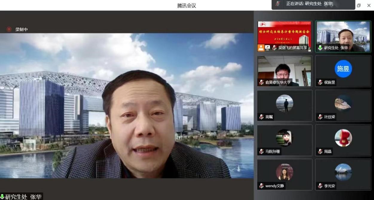 为深入贯彻全国研究生教育会议精神,落实教育部、国家发展和改革委、财政部《关于加快新时代研究生教育改革发展的意见》(教研〔2020〕9号)等文件精神,进一步深化研究生教育综合改革,落实分类培养要求,全面提高人才培养质量,4月20日,研究生处(学科办)组织召开硕士研究生培养方案专题报告会,会议邀请东华大学研究生院常务副院长俞昊教授为我校硕士研究生培养方案修(制)订工作做指导。各学位点负责人、各学院分管研究生教育工作副院长、研究生秘书等参会。会议由研究生处处长、学科办主任张华主持。