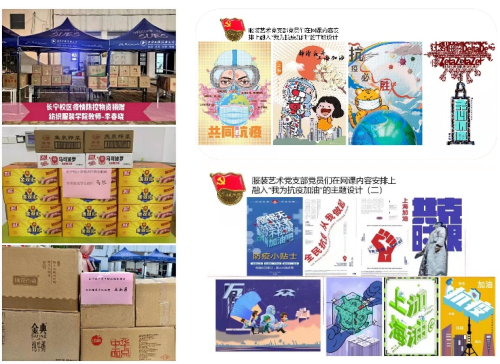教工党支部进系室、学生党支部进班级,向全体师生宣讲防疫政策、传达近期疫情防控工作精神,在师生中达成“三个明确”的共识,明确中央疫情防控“外防输入,内防反弹,动态清零”的总方针、明确上海和高校面临的疫情防控形势及工作要求、明确疫情防控与每名师生息息相关要共克时艰。师生党员积极奔赴社区落实“双报到”制度,力所能及地参与所在区域志愿行动。获批“上海市党建样板支部”的纺织工程党支部积极动员党员前往社区一线报到,支部8名党员目前共参与社区志愿服务活动44人次;服装艺术党支部党员教师居家办公期间用心用情上好网课,在网课中融入“我为抗疫加油”的主题设计,将坚守人民至上理念、打赢疫情防控战争作为生动的育人内容融入课程思政;中法教师党支部主动联系长宁校区疫情防控专班,捐赠生活物资,并发挥中法系师生专业优势,积极参与到长宁校区防疫隔离车内部隔离改造的工作中。在党章学习小组的引领下,6名在校学生主动递交入党申请书,积极向党组织靠拢。